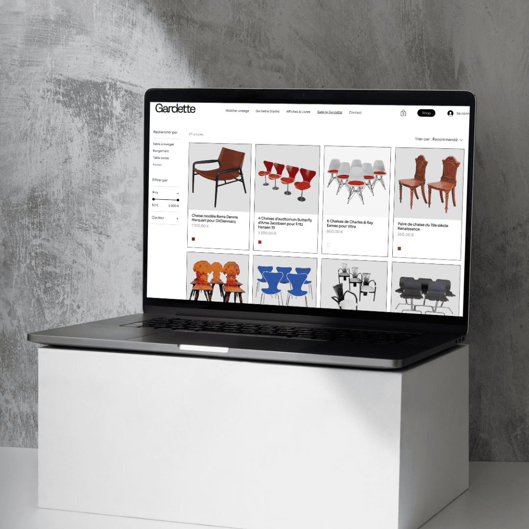 Création d’un site internet et d’une présence digitale pour une galerie de mobilier design. Le projet vise à valoriser les pièces et l’univers de la galerie à travers une identité visuelle sobre et une communication adaptée aux réseaux sociaux.